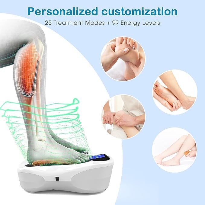 【 Clinical treatment 】 Using Creliver foot stimulator Pro to explore the power of clinical relief. It is a class II medical product, and it is the first choice for adjuvant treatment of foot neuropathy, muscle pain, soreness and arthritis. Combined with a variety of advanced technologies, it can improve blood circulation from the feet to the whole body and promote the relaxation of stiff nerves and muscles. [3D shape upgrade] EMS foot muscle stimulator promotes comfort and ergonomics to a new level. Made of high quality PP material, with a 20 arc design, it fits your feet perfectly. Enjoy customized comfortable fit and enhance the stability of foot muscles. The design of Creliver EMS foot stimulator begins with your journey of pain and relaxation. 【 EMS+TENS+EPT】Creliver can be used as a multifunctional TENS machine, with three latest clinical technologies: electrical muscle stimulation (EMS), transcutaneous nerve stimulation (TENS) and electronic pulse therapy (EPT). Attached with 8 TENS unit pads, it can be attached to the painful parts of the body for local treatment and relief, and can also be used together with the foot pad machine. [Personalized customization] No noise! No vibration! There is no limit to the size of the foot! There are 25 treatment modes (acupuncture, massage, scratching, kneading, patting and finger pressing) in the foot circulation equipment of EMS foot massager, which can deeply and directly contact the source of tension or pain, plus 0-99 electromagnetic wave intensity to meet your needs, and in turn achieve ideal results. Can be used remotely.