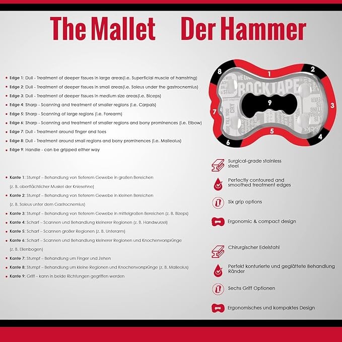 Ideal choice for chiropractors, physiotherapists and myofascial relaxation massage therapists: includes two high-quality medical-grade IASTM tools, wet wipes and emollients-one-piece portable box (including sterilized wet wipes and all-natural rock friction emollients). 2 soft tissue tools–this mallet is made of 100% medical stainless steel with multiple treatment edges+the fish school is made of a strong thermoplastic elastomer, which is convenient for treatment on the road! RockTape education provides training on how to use IASTM+in combination with other modes (i.e. RockTape, exercise, joint manipulation/mobilization) to affect the neurosensory components of rehabilitation. These tools may be hard, but these technologies do not need to be radical to provide excellent patient results+tools can also reduce the compression pressure on clinicians' hands, thus prolonging the career of manual therapists. Trusted by more than 45,000 medical experts around the world!
